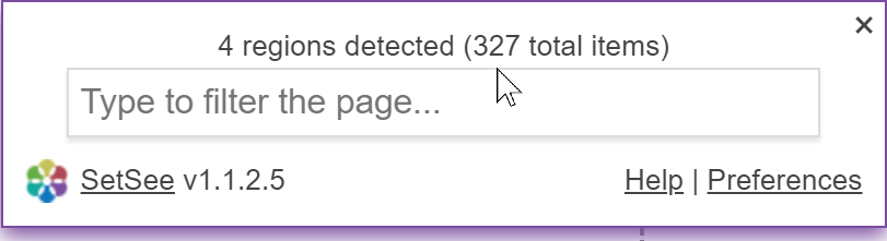 You can just start typing to see how it works, or type ESC to clear the current search. Don’t worry about what you type, as all filtering is temporary and you won’t break anything. If the SetSee panel disappears, just reload the page.