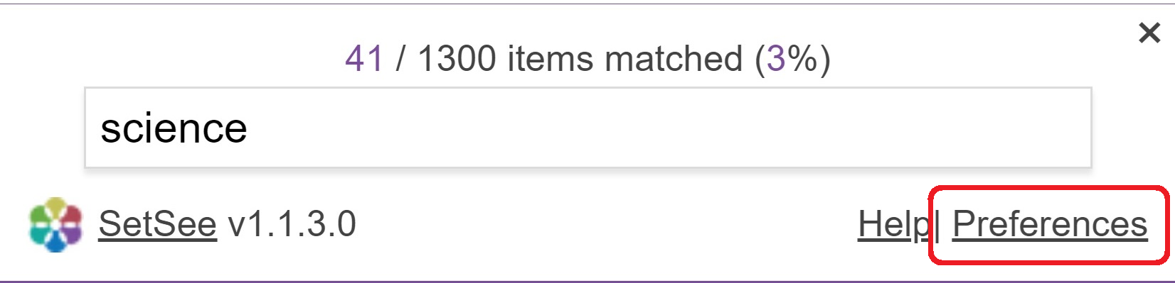 For example, a bullet list, a table, or a series of paragraphs could all be a region, and different lists could be in different regions.  An item is a single part of the region that could show up after you filter the page (a single item could be the only match in the set).  SetSee determines what constitutes an “item” on a particular page, and how many items there are in each region, and reports the total number, across all the regions, in the above message in the panel.  When you filter such a page, the above message changes to something like “50/502 items matched (10%)”, showing you how many of the items, across all the regions, matched your search terms.