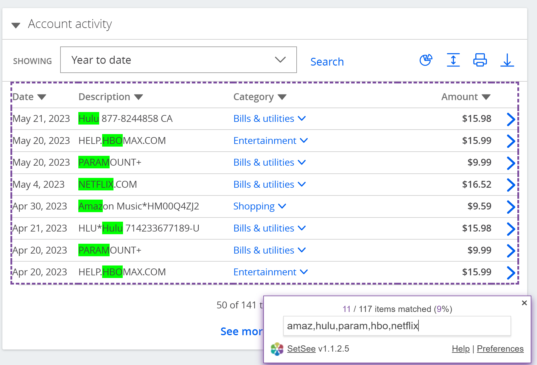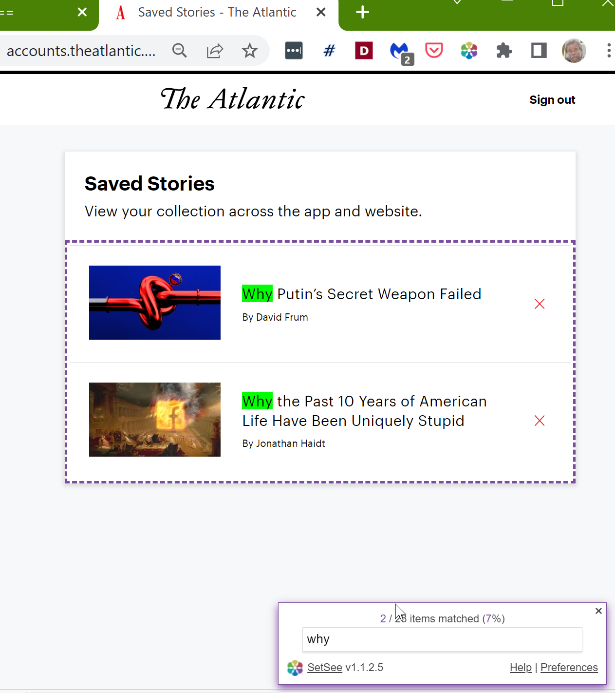 SetSee often works well on various personal accounts you may have. Some such personal pages have generic URLs, like the first one below for the NY Times, but mostly you’ll have to just try SetSee when you’re logged into your accounts.