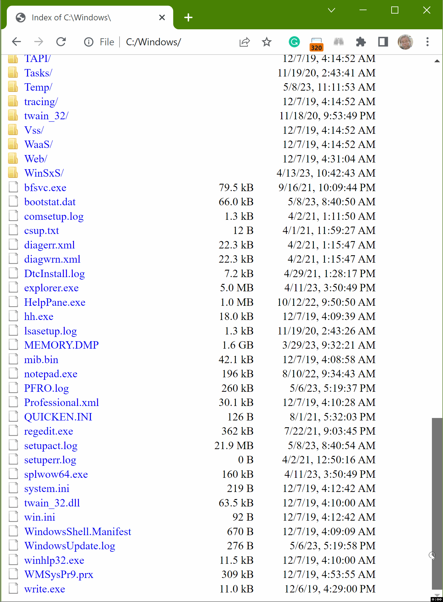 ► 12 sections found, 1% of the total - the 100+ files/folders in the Windows OS system directory named C:\Windows